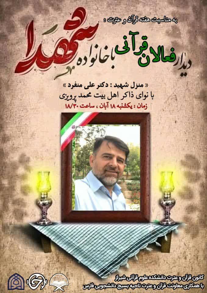 به گزارش ایحا از شیراز: به مناسبت هفته قرآن و عترت، دانشجویان دانشکده علوم قرآنی شیراز با خانواده شهید دکتر علی منفرد، از جانبازان هشت سال دفاع مقدس، دیدار و گفتگو کردند.