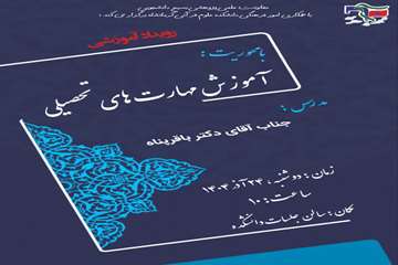 مدرس این نشست با تأکید بر نقش مهارت‌های تحصیلی در موفقیت علمی دانشجویان، به بیان راهکارهای عملی و کاربردی در مسیر یادگیری مؤثر پرداخته و اظهار داشتند مهارت های تحصیلی را فنون و روش های یادگیری موثر می دانند. هم اکنون یادگیری و مطالعه هدفمند نیز مثل بسیاری از فعالیت ها و امور جاری نیازمند فراگیری و مهارت لازم است.