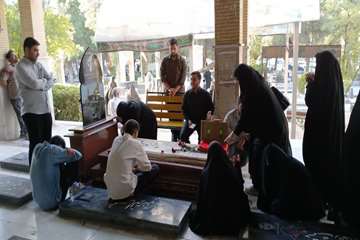 مراسم غبار روبی، عطر افشانی و قرائت فاتحه بر مزار مطهر شهدا در محل باغ فردوس کرمانشاه توسط دانشجویان بسیجی دانشکده علوم قرانی کرمانشاه برگزار گردید.