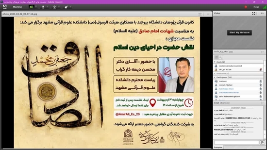 به مناسبت شهادت امام جعفرصادق علیه السلام و به همت کانون قرآن پژوهان دانشگاه بیرجند و هیأت الرسول(ص) دانشکده علوم قرآنی مشهد نشست مجازی با عنوان نقش حضرت در احیای دین با حضور محسن دیمه کار، رئیس دانشکده علوم قرآنی مشهد  برگزار گردید.